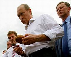 В субботу в Ростове глава государства проиграл на скачках, встретился с президентом Венесуэлы Уго Чавесом и выступил с инициативой провести саммит проамериканской организации ГУАМ на Соловках. Еще Владимир Путин продемонстрировал миру, кому готов передать штурвал комбайна и с кем готов рассекать по ухабам на грузовике. Может быть, в чистом поле под Ростовом президент провел еще одну спецоперацию по дезориентации российской и мировой элиты. А может быть – дал старт избирательной кампании будущего президента.