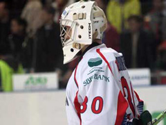 До окончания первого периода счет не изменился, хотя у обеих команд было много возможностей для того, чтобы забросить шайбу, но надежно играли вратари – Александр Еременко и Леклер.