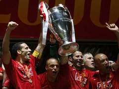 | Футболисты "Манчестер Юнайтед" с Кубком Лиги чемпионов |