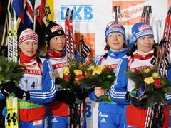 Женская сборная России по биатлону заняла второе место в эстафете на Кубке мира