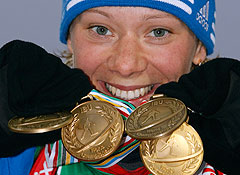 Биатлонистка Ольга Зайцева в воскресенье принесла еще одно "золото" российской сборной. Она стала чемпионкой мира по биатлону в гонке с общего старта на 12,5 километра. Это уже ее четвертая медаль на этих соревнованиях. Залогом успеха "Зайки" стала высококлассная тактическая выучка на протяжении всей трассы и достаточно точная стрельба.