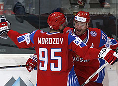 В третьем периоде место Брызгалова, пропустившего одну-две необязательные шайбы, в воротах нашей команды по решению тренерского штаба занял Еременко. Игра шла до первой заброшенной шайбы. Если бы удача улыбнулась белорусам, они бы всей командой образовали стену у своих ворот и начали убивать время. К счастью, сборную России спас от подобной перспективы герой финала в Квебеке Ковальчук. После отличного паса Морозова Ковальчук прошел по левому флангу, ушел от защитника и пробил в противоход Мезину, попав ему точно в "домик" - 4:3. Команда Глена Хэнлона предприняла титанические усилия, чтобы перевести встречу в овертайм, но Россия устояла и вышла в полуфинал, где встретится со сборной США.